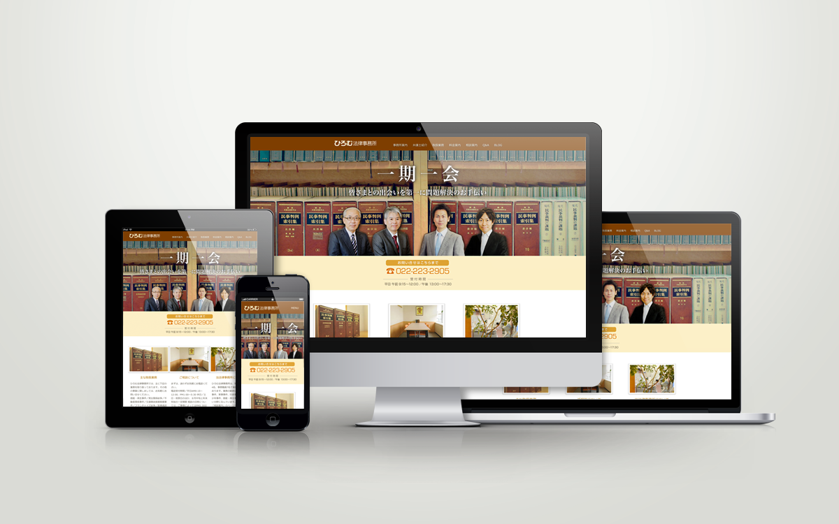 hiromu law office photograph / web / works ひろむ法律事務所オフィシャルサイト PC以外からのアクセスの増加に対応するために、wordpressにてレスポンシブ対応サイトへリューアル Direction/Design/Photo/Writing Prev Blog Next 2011/12/11